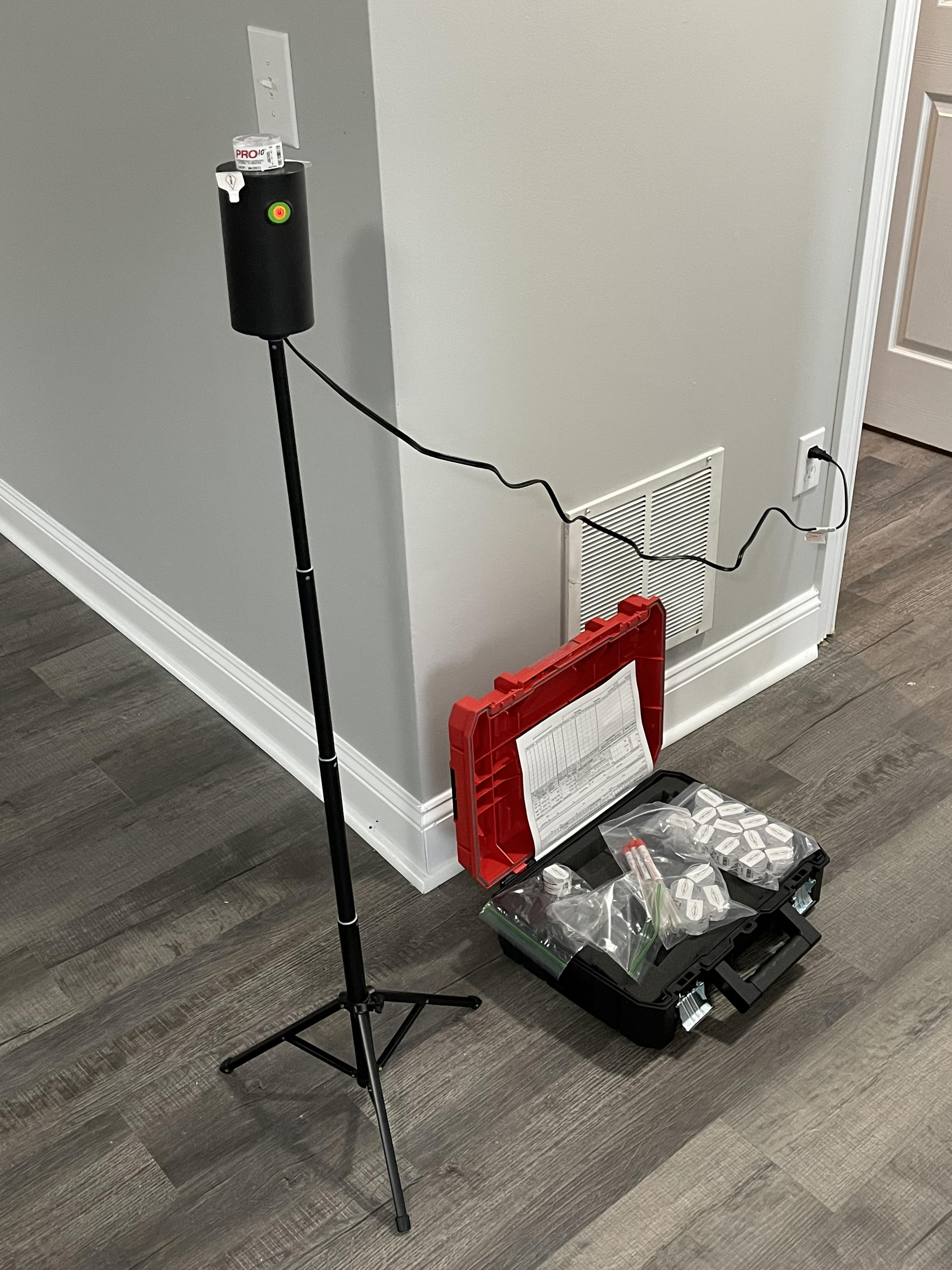 Air samples can be used to gather data about mold spores present in the interior of a house. These samples are taken by using a pump that forces air through a collection device which catches mold spores. The sample is then sent off to a laboratory to be analyzed. InterNACHI inspectors who perform mold inspections often utilize air sampling to collect data, which has become commonplace.